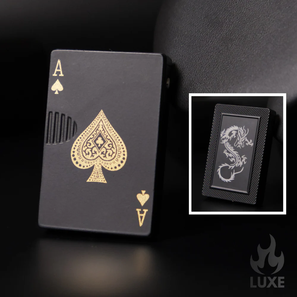 The sliding mechanism adds novelty to the traditional lighter design, making it a standout piece in our collection. With a simple slide of the Green Lucky Ace, you can ignite the flames effortlessly, making it a breeze to light candles, cigarettes, or even cigars. Plus, the lighter is refillable with butane, which means it can last a lifetime!